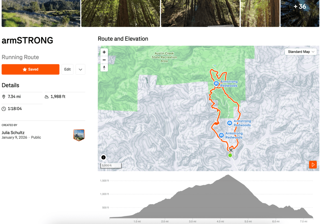 This trip was mostly different. No river tubing (yes hot tubbing), yes running, yes biking, yes an outdoor activity where I got too cold (King Road bike post is incoming). Our run was at Armstrong Redwoods, one of those those places that quietly rewires your brain.