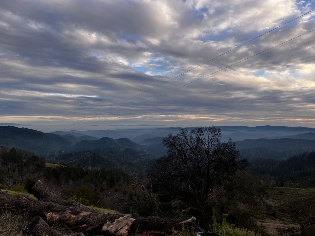 You start the route on the main park trail, passing massive redwoods in what kind of feels like a chilly coastal jungle in the winter. Pretty quickly you’ll start ascending Pool Ridge Trail, which was a lovely climb. The grade was gentle and it offered lush forests and nice views of Sonoma County wilderness.